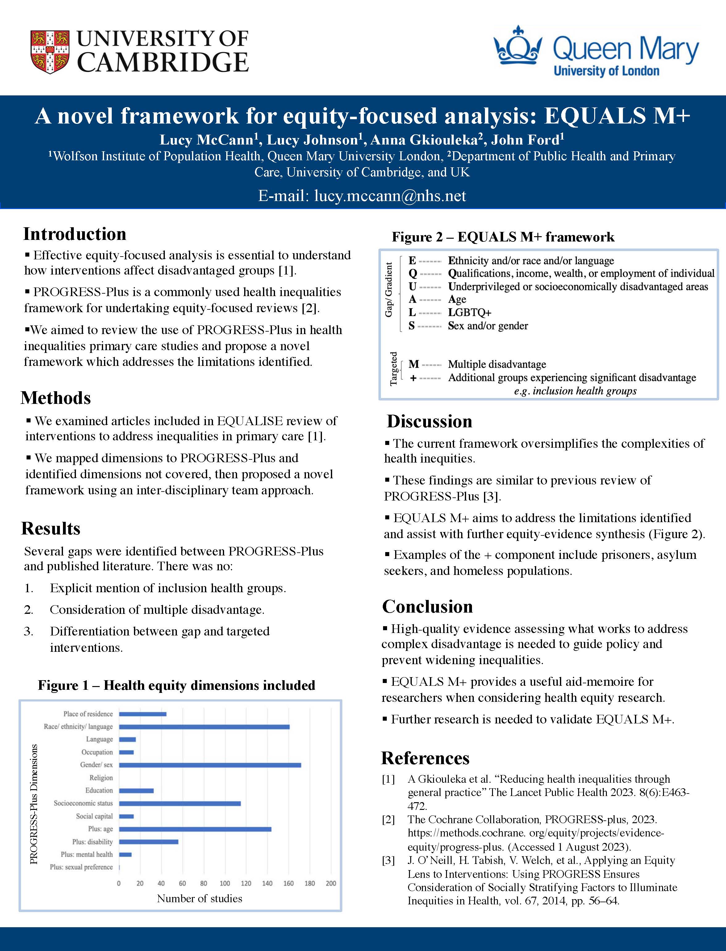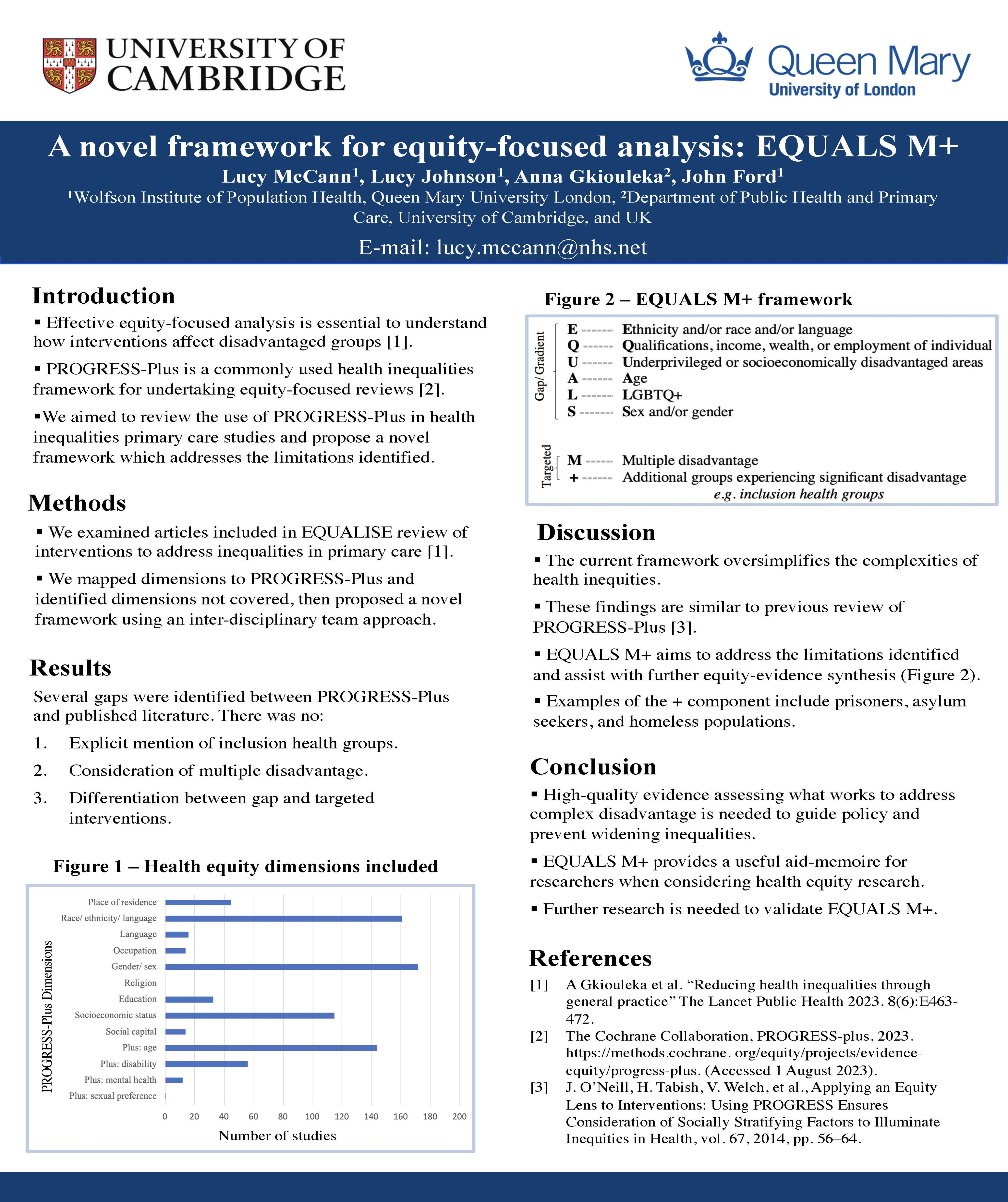 Lucy is an academic foundation doctor working in health equity with John Ford. They are developing a novel framework for effective equity-focused evidence synthesis to improve on PROGRESS-Plus, a Cochrane developed tool.