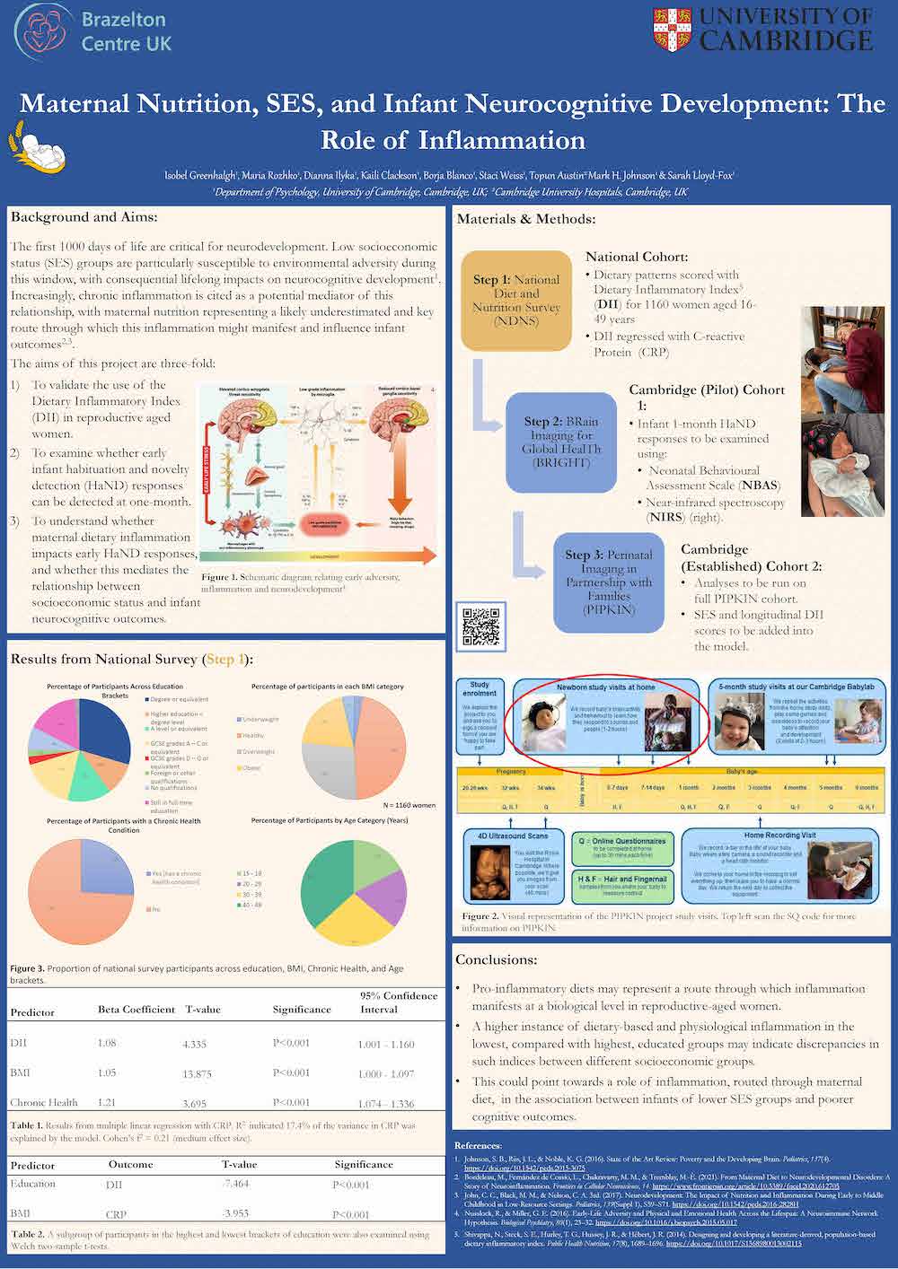Isobel is a third year PhD student working on the PIPKIN project (Perinatal Imaging in Partnership with Families) alongside working in collaboration with the Brazelton Centre. Specifically, she is examining how maternal inflammation, nutrition, and SES can work together and apart to influence early infant neurocognitive trajectories, using functional near-infrared spectroscopy and the neonatal behavioural assessment scale.