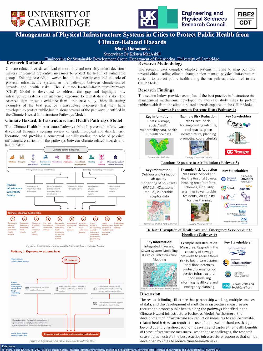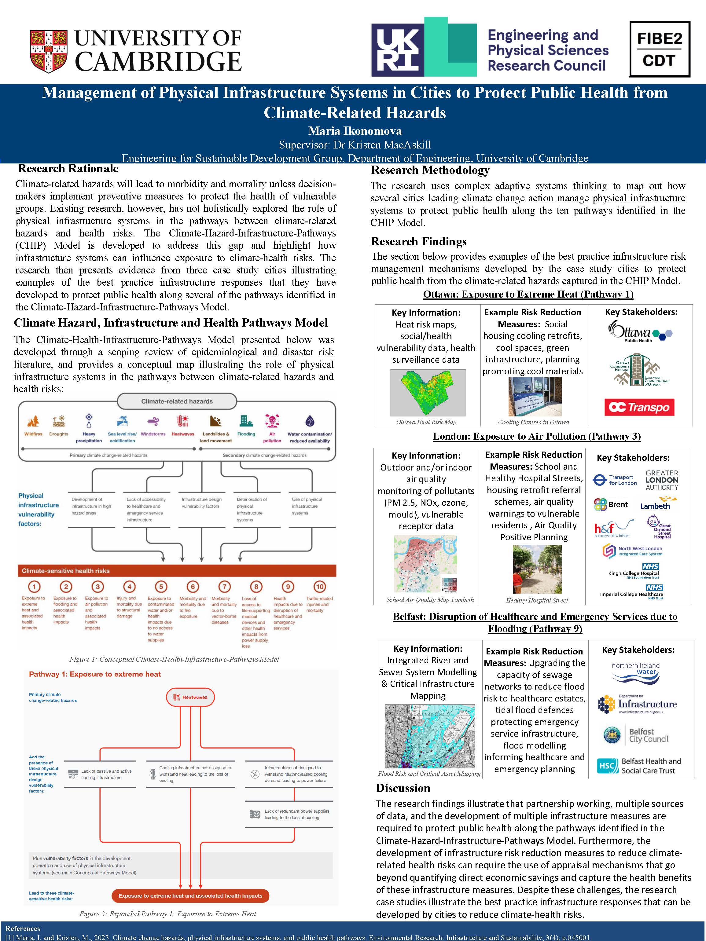 Maria is working with several UK and international cities as part of her PhD research project including Belfast, Ottawa, and London. The end goal of the research is to inform future policy and best practices on how to develop preventive infrastructure responses to protect public health in a changing climate.