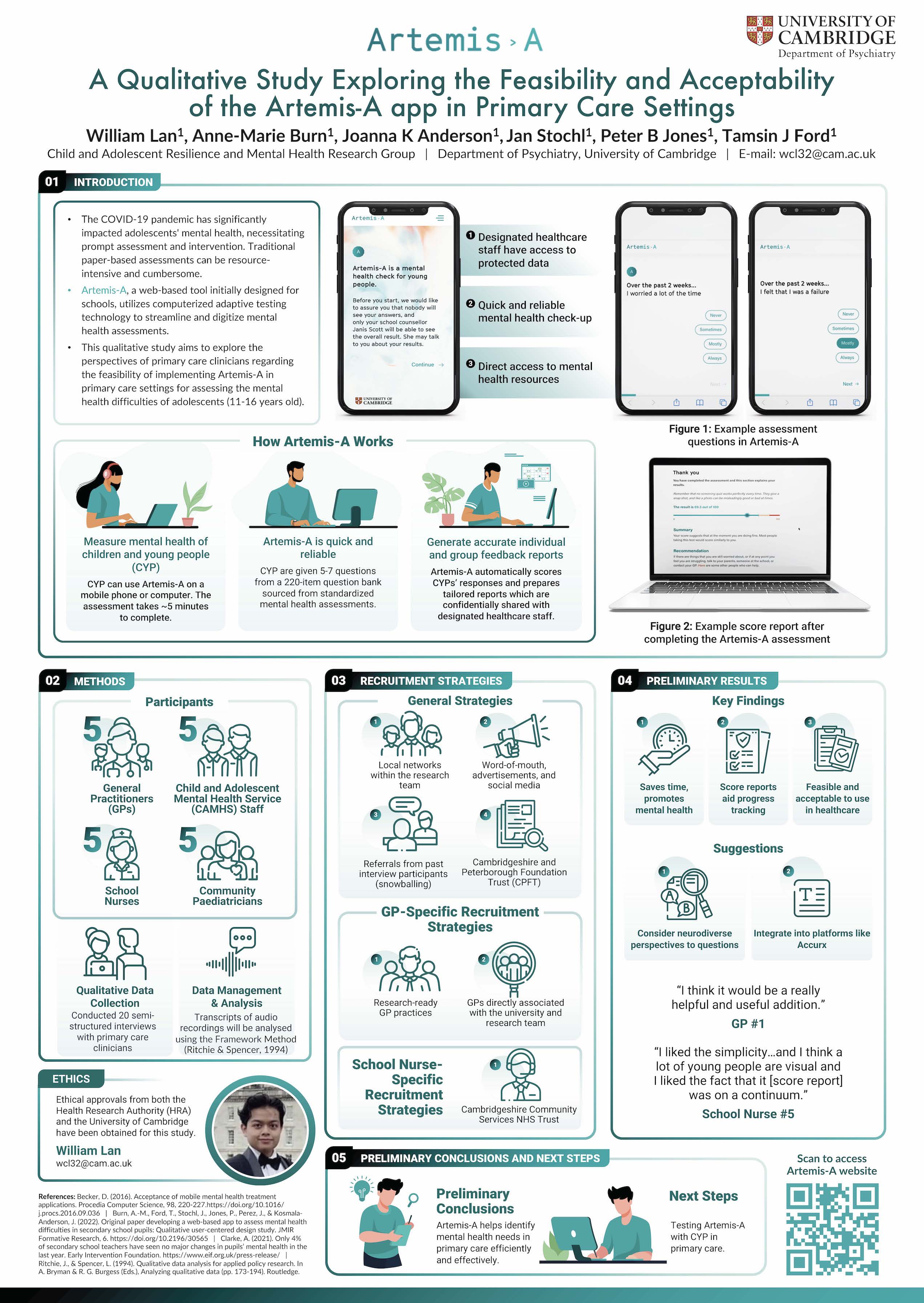 William is currently undertaking an MPhil at the University of Cambridge's Department of Psychiatry. His research delves into digital mental health assessments, with a specific focus on the deployment of Artemis-A, a pioneering digital mental health screening tool, within UK primary healthcare. The goal is to address the underdiagnosis of mental health issues in adolescents. He is investigating Artemis-A's potential to revolutionise mental health assessments, aiming for a future where early detection and timely intervention become standard practice.