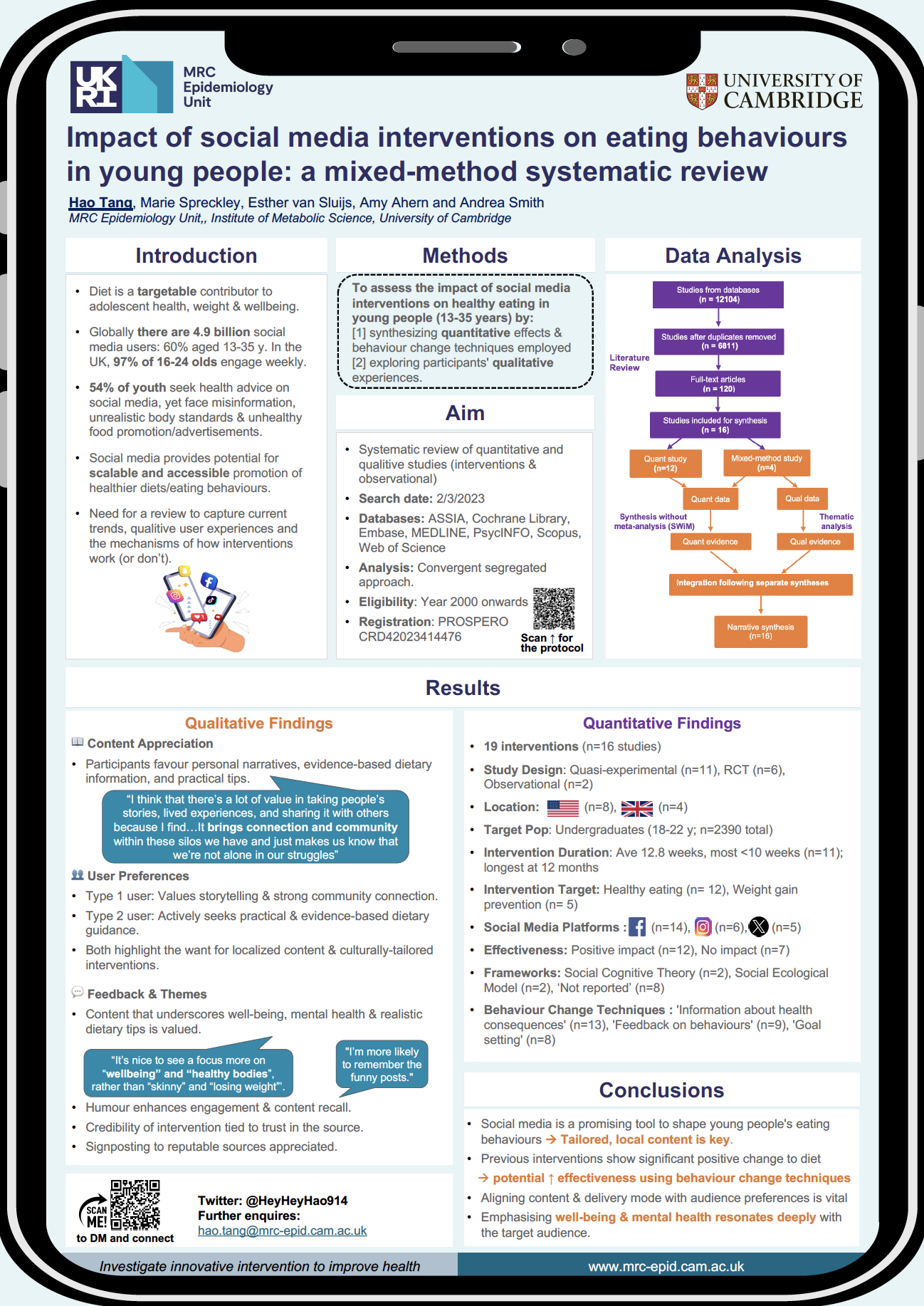 Amongst the array of strong contributions, Hao Tang's poster examining the impact of social media interventions on eating behaviours in young people was voted winner by conference attendees.